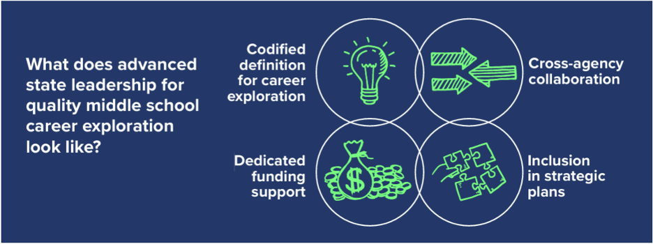 - Continue to improve access to, and quality of, middle grades career exploration in leading states; and